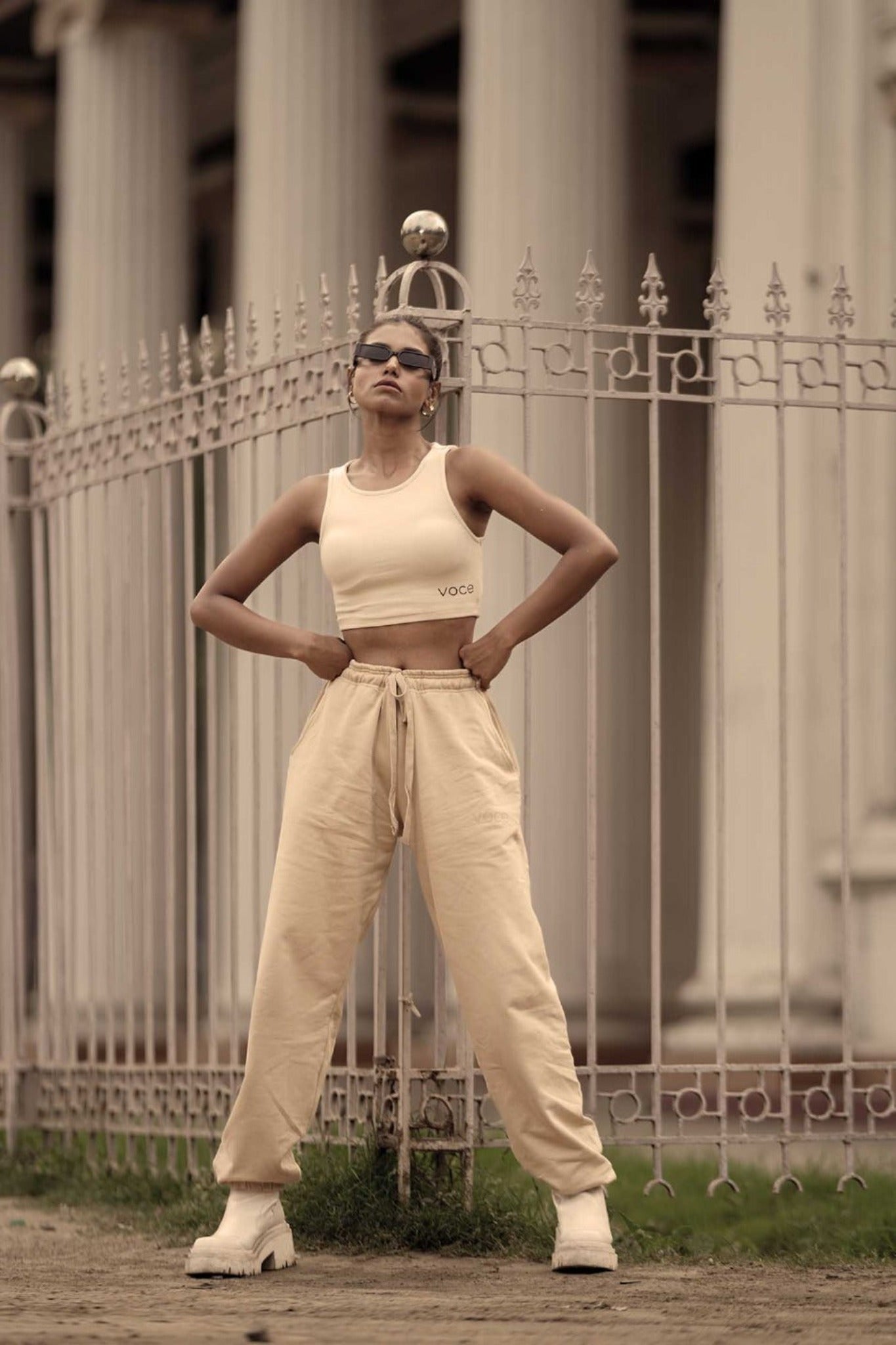 - Sweatpants offer a straight-leg fit with a jogger finish, elasticated waistband with drawstrings, oversized pockets, and rubber print logo on the left upper side.